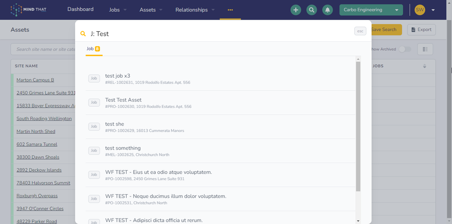 The Global Search feature works like a conventional search bar, allowing you to search for everything in the app or website, especially record types like Jobs, Sites, Relationships, Documents and Qualifications.