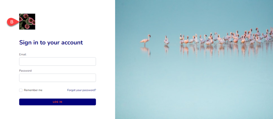 Changing (b) the Logo on White will reflect on the login page, as shown in the example above.