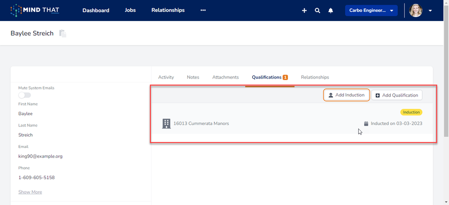 Alternatively, you could add a new induction through the contact itself. Use the Global Search to search for a specific contact with all the qualifications you need for the work order. Click the contact, and you will redirect to that contact’s record.