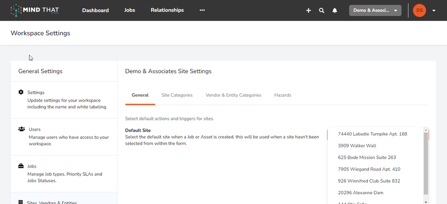 Under General Settings are several customisation options you can choose from and change according to your company’s preference. The options include Settings, Users, Jobs, Sites, Vendors and Entities, and more. We’re going to focus on the Sites, Vendors & Entities section.